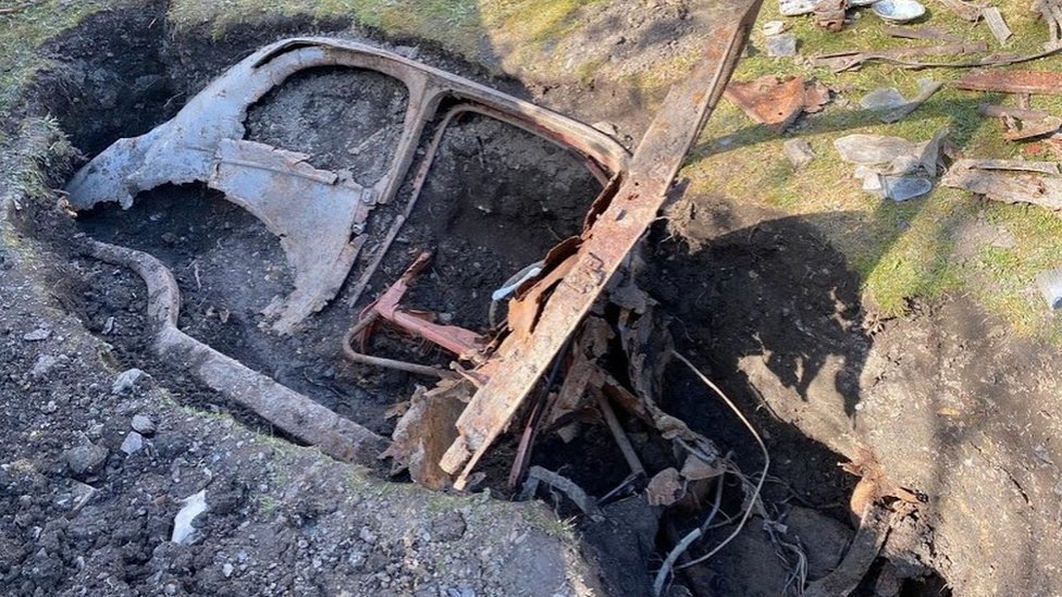 فقد عثر الرجل على سيارة قديمة من طراز "فورد بوبيولار" تعود إلى فترة الخمسينيات من القرن العشرين مدفونة تحت الارض، بحسب هيئة الاذاعة البريطانية "بي بي سي".