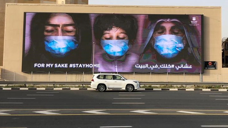 وتغطي الحملة، التي تم إطلاقها باللغتين العربية والإنجليزية، العديد من الأماكن الحيوية في إمارة دبي، وتتضمن الأعمال الفنية عبارة: «عشانهم وعشان دبي #خلك_في_البيت».