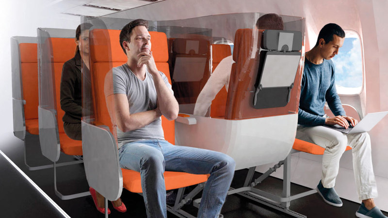 قدمت شركة التصميم الإيطالية، آفيو إنتيريرز، مفهومين مبتكرين، لتصميم مقعد طائرة يحافظ على سلامة المسافرين، أو على الأقل يرفع من نسبة الأمان، في ظل تفشي وباء «كوفيد-19».