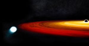 في مشهد كوني درامي، التَهم ثقب أسود جزءًا من نجم بعيد، قبل أن يهرب النجم –في الوقت الحالي على الأقل. ودرس فلكيون بيانات أشعة سينية جمعتها وكالة ناسا ووكالة الفضاء الأوروبية، فوجدوا ما يبدو أنه بقايا نجم أحمر عملاق مَر بالقرب من ثقب أسود، فجرّده الثقب من طبقاته الخارجية، لكن نجت نَواته (قلبه الذي هو الآن قزم أبيض). لكن يتوقع الفلكيون أن الثقب الأسود سيواصل التهام بقايا النجم شيئًا فشيئًا حتى لا يَبقى منه إلا جزء لا يُذكر.