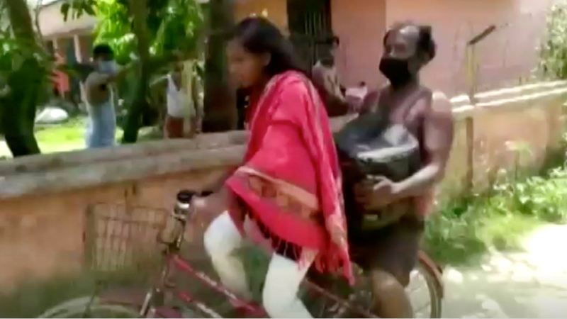 أصبحت فتاة هندية حديث الناس في بلدها، محتلة عناوين الأخبار، بعدما حملت والدها المصاب خلفها على دراجة هوائية، قاطعة به أكثر من 1200 كيلومتر، في أنحاء البلاد، بعدما أجبرهما الإقفال التام، بسبب فيروس كورونا المستجد، على العودة إلى قريتهما.
