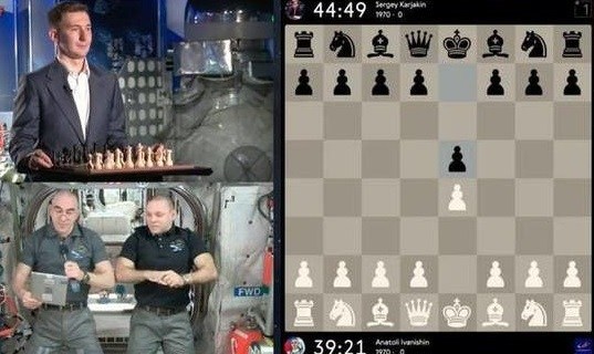 واجه رائدا فضاء روسيان في محطة الفضاء الدولية اليوم الثلاثاء بطل شطرنج موجودا على الأرض خلال مباراة بثت مباشرة وكانت نتيجتها التعادل.