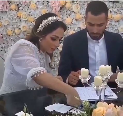 وتداول رواد موقع تويتر، فيديوهات خلال عقد القران، وسط فرحة كبيرة من ضيوف العروسين، الذى اقتصر على عدد محدود من الأهل والأصدقاء.