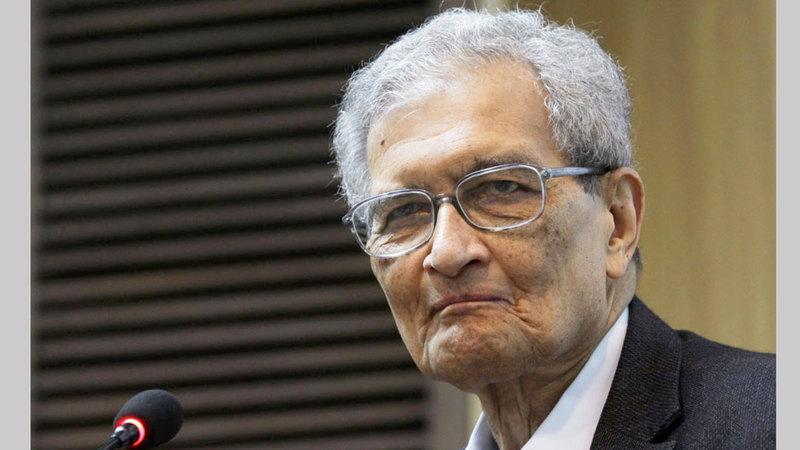وولد سن عام 1933 في مدينة شانتينيكيتان الهندية، وعاش بمدينة كامبريدج بولاية ماساتشوستس الأميركية، وحصل على جائزة نوبل للاقتصاد عام 1998.