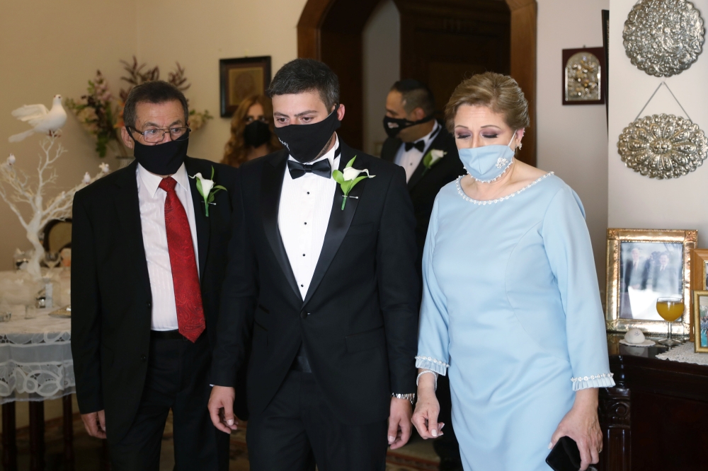 وقال العريس زيد «طبعاً يعني الواحد بيتمنى إنه الظروف كانت طبيعية وبيتمنى أنه يكون الأهل والأصحاب موجودين، بس طبعاً منتفهم الظروف الموجودة حاليا، وحرصنا إنه بس أقلية يعني العم والعمة يكون موجودين».
