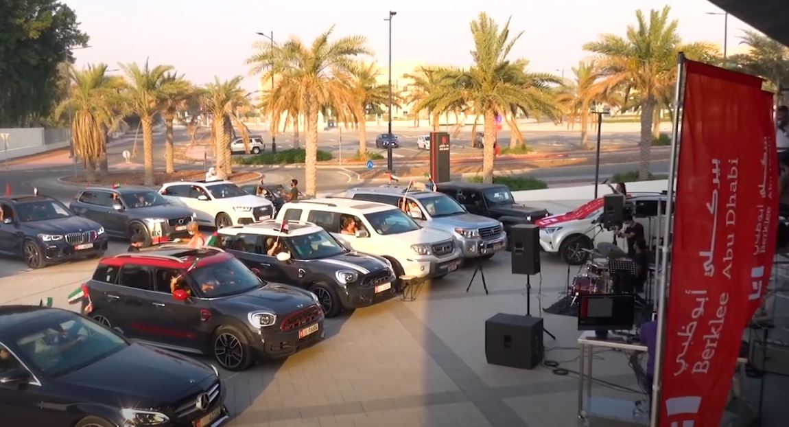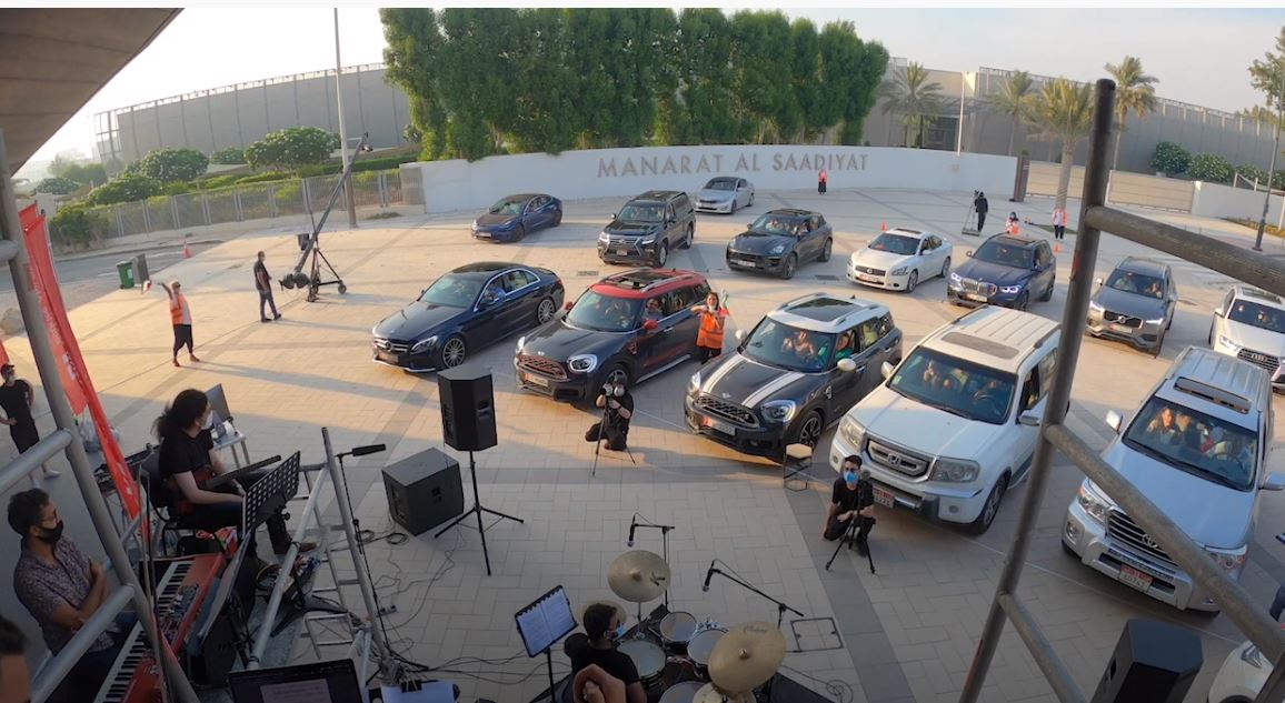 نظمت دائرة الثقافة والسياحة – أبوظبي أول حفل موسيقي ضمن سلسلة عروض "متى؟ الآن!" استمتع فيه عشاق الموسيقى بأجمل الألحان وهم آمنون في سياراتهم الخاصة حول مبنى مقر بيركلي أبوظبي في المنطقة الثقافية في السعديات.