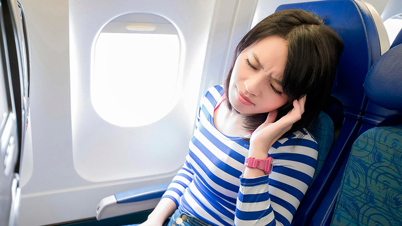 أفادت الرابطة الألمانية، لأطباء الأنف والأذن والحنجرة، بأن السبب في معاناة ضغط على الأذن أثناء السفر بالطائرة، يرجع لانضغاط طبلة الأذن إلى الداخل، بفعل انخفاض الضغط بالأذن الداخلية، والذي ينجم عن ارتفاع الضغط بالبيئة المحيطة، أثناء الهبوط مثلاً. وأضافت أنه يمكن مواجهة المشكلة، من خلال التثاؤب والبلع. وبالنسبة للصغار، ينصح بمواصلة تناول المشروبات أثناء هبوط الطائرة؛ إذ يساعد البلع المستمر على معادلة الضغط.