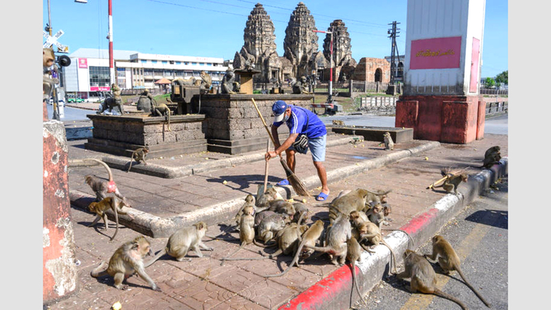 تايلاند التي أغلقت حدودها منذ انتشار جائحة «كوفيد-19»، غاب عنها السياح الأجانب الذين كانوا يقدمون الطعام للقردة لالتقاط صور سيلفي معها، ما زاد الوضع تفاقماً.