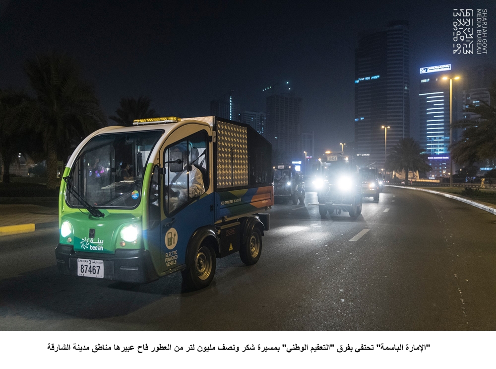 جاء ذلك في ختام مسيرة شكر وعرفان لفرق "التعقيم الوطني" تقديرا لجهودهم الكبيرة في تعقيم جميع مناطق مدينة الشارقة السكنية والصناعية.