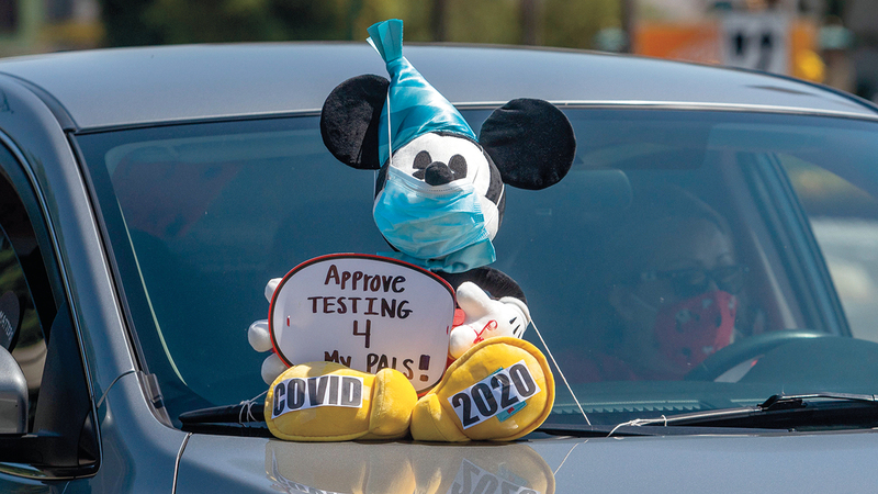 احتج عاملون بمنتجع ديزني لاند في كاليفورنيا، من داخل سياراتهم، بدعوى أن شركة «والت ديزني» لم توافق على توفير الحماية الكافية للموظفين، عند عودة الوجهة الترفيهية للعمل في ظل انتشار جائحة كورونا. وكانت الشركة تخطط لاستقبال الضيوف في «ديزني لاند»، ومتنزه كاليفورنيا أدفنشر المجاور، بدءاً من 17 يوليو، لكنها أرجأت الأمر لموعد غير محدد.