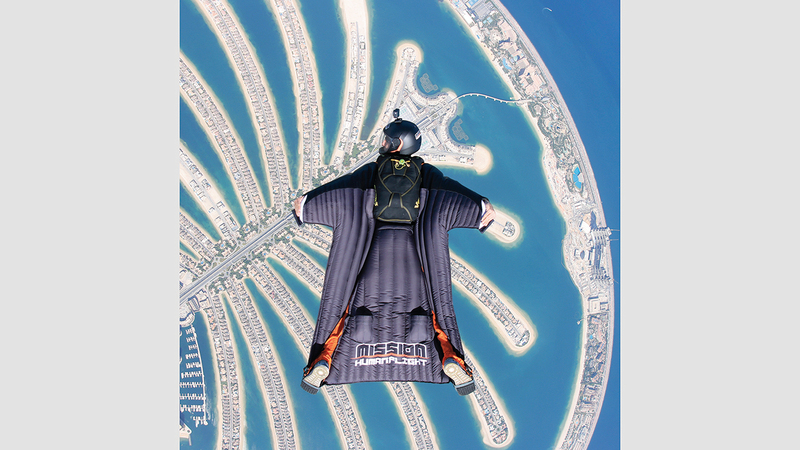 • دبي نجحت في تطوير معايير السلامة، إذ يحمل الطائر البشري مظلتين: الأساسية، والاحتياطية.