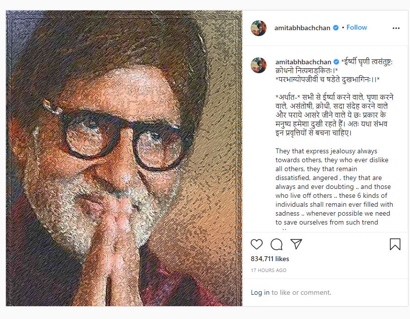 أميتاب باتشان من المشفى..رسالة مؤثرة وصورة على "انستغرام"