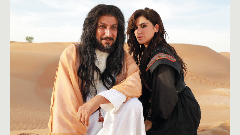 عبدالمحسن النمر وصبا مبارك في مشهد من مسلسل «حارس الجبل». من المصدر