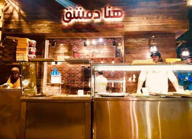 ويضيف أنه "تعرف منذ 5 سنوات على صديق مصري اسمه أحمد ياسين، 34 عاما، وكان صاحب كافيه فاقترح عليه فتح مشروع مشترك كافيه مع محل حلويات سورية فرحب الصديق المصري بالفكرة وأطلقا على المشروع الجديد اسم هنا القاهرة ..هنا دمشق".