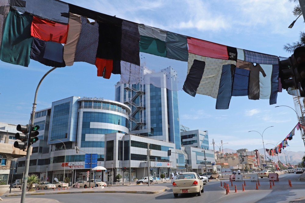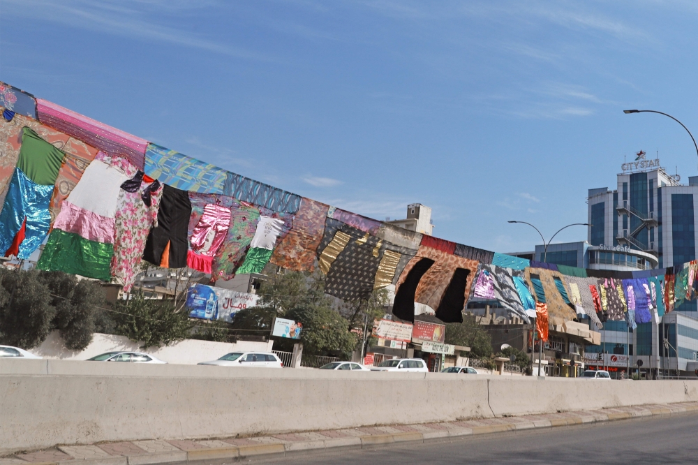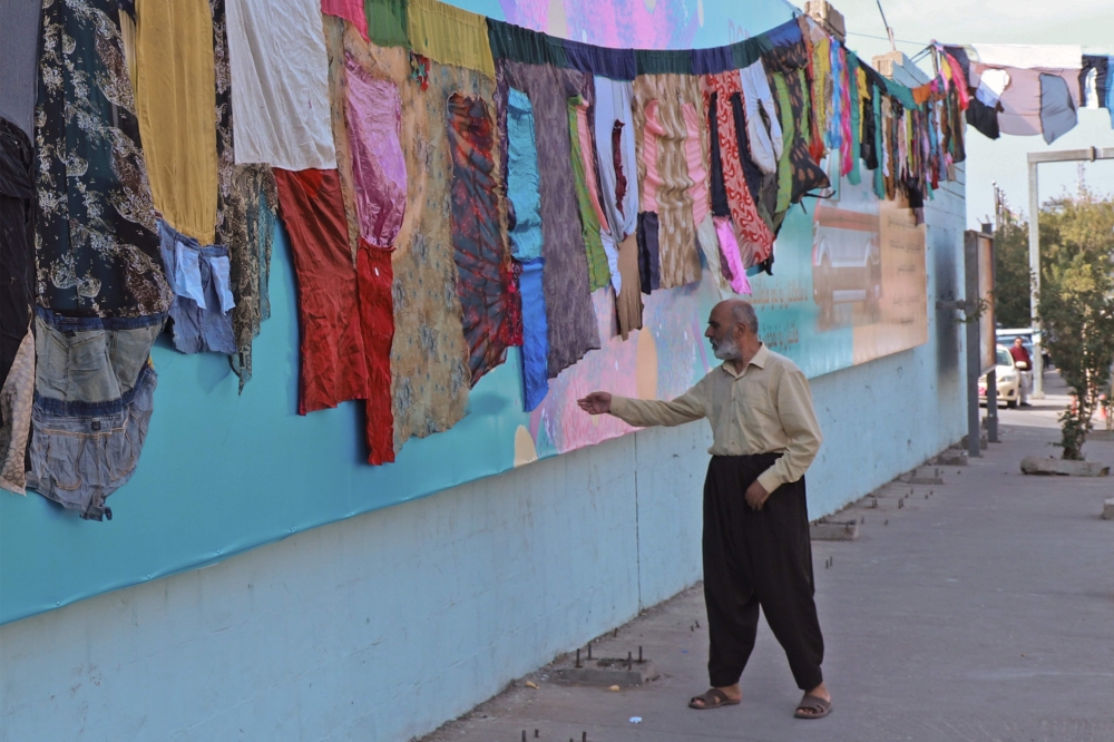 رُفع في مدينة السليمانية التابعة لكردستان العراق، أمس، عمل فني حيك من ملابس نساء معنفات جمعتها الفنانة والناشطة المدنية تارا عبدالله على مدى ثلاثة أشهر، لتلقي من خلاله الضوء على قضية العنف ضد النساء في الإقليم.