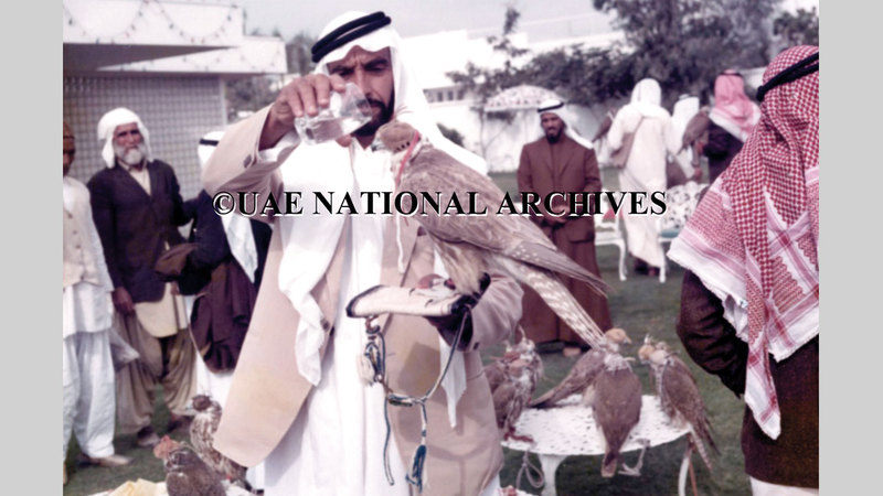 ومع الاحتفال باليوم العالمي للصقارة، الذي يوافق 16 نوفمبر من كل عام، لابد أن يبرز اسم المغفور له الشيخ زايد بن سلطان آل نهيان، طيب الله ثراه، لارتباطه بهذه الرياضة منذ طفولته واعتزازه بها، ولما قدمه لها من اهتمام ورعاية ومبادرات فريدة، فاستحق بجدارة لقب «الصقار الأول»، وتظهر أهمية الصقارة لدى الشيخ زايد في قيامه بتأليف كتاب خاص عنها، بعنوان: «رياضة الصيد بالصقور»، الذي تناول فيه علاقته بهذه الرياضة التي شرع في تعلمها وهو في الـ12 من عمره، وكان يصيد بالبندقية، ولصغر سنه كان يعتمد حينما يضرب البندقية على ساتر أو أي شيء آخر، وحينما بلغ الـ16، كان قد تعلم الصيد بالصقور، فشرع يزاول الصيد بالاثنين معاً بالبندقية حيناً وبالصقر حيناً. وفق ما يذكر في الكتاب.