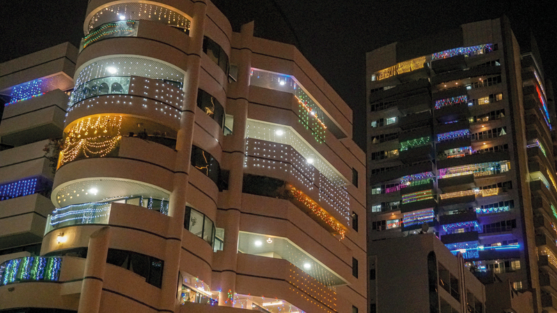 ويعد مهرجان «ديوالي» أحد أبرز المهرجانات، ضمن التقويم السنوي للفعاليات في دبي، حيث تضاء مختلف الأحياء، ومراكز التسوق والمعالم الرئيسة في المدينة بألوان مبهجة، مع الاحتفال السنوي بهذا المهرجان الذي تنظمه مؤسسة دبي للمهرجانات والتجزئة. وتزين عدد كبير من الأبنية والتجمعات السكنية والتجارية بهذه المناسبة. عدسة «الإمارات اليوم» تجولت في أحياء مختلفة من إمارات الدولة، راصدة زينات المهرجان.