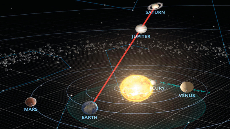 المشتري يحتاج إلى 12 سنة ليدور حول الشمس، وزحل 30 سنة.