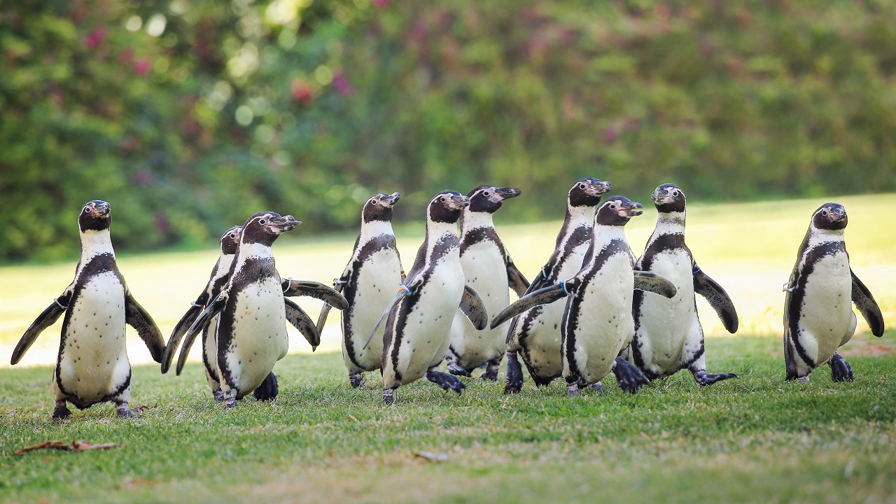 البطاريق وصلت إلى حديقة العين.. تستعرض جمالها جماعات وفرادى