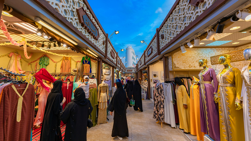 تتميز الأقمشة الكويتية والبحرينية بجودتها وتصاميمها وخاماتها المميزة ما يجعلها من أكثر المنتجات رواجاً في الجناح. من المصدر