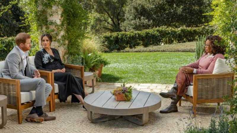 هاري وزوجته ميغان في لقاء مع أوبرا وينفري سيبث في السابع من الشهر الجاري.رويترز