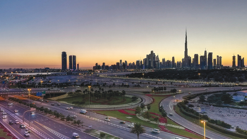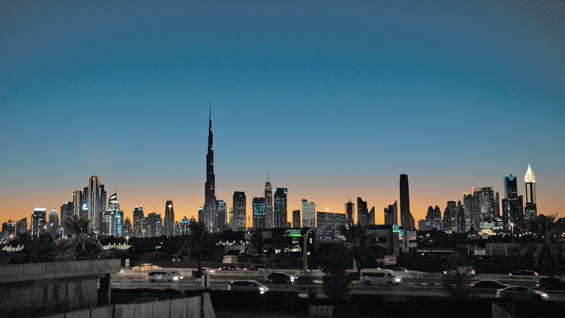 بقايا الشفق، ولحظات ما قبل الغروب وما بعده، تلوّن أفق دبي.. سماءها وأرضها ومعالمها الشامخة، لتضفي مزيداً من الجمال على كامل المدينة.. من أعلى نقطة في العالم برج خليفة، وحتى كل ما حوله.