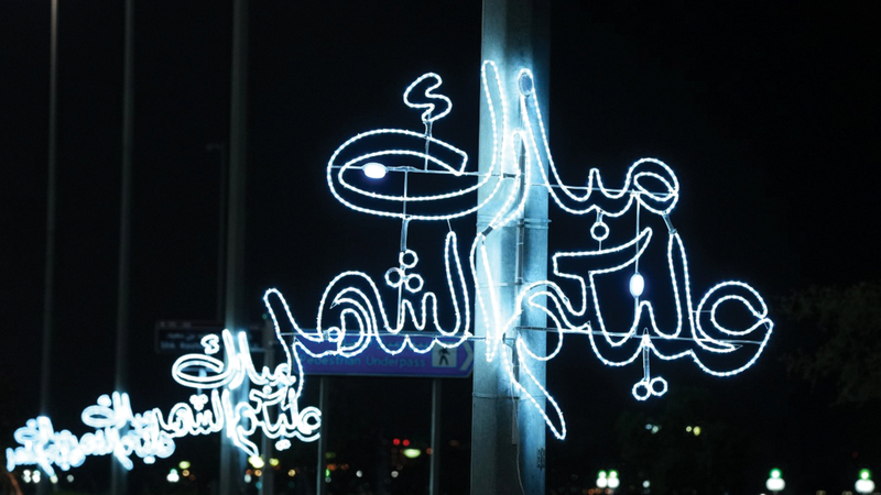• مجسمات مضيئة لعبارات تحاكي الشهر الفضيل والعادات الإماراتية المتعلقة به.