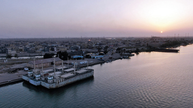سفن صدئة ورافعات معطّلة تصxطف في مرسى ميناء المعقل في البصرة، الذي كان ذات يوم مركزاً للتجارة في العراق. وبُني ميناء المعقل بعد الاحتلال البريطاني للبصرة وقت الحرب العالمية الأولى، وبدأ العمل به في عام 1919، واستخدم في بادئ الأمر لأغراض عسكرية حتى سُلّم للسلطات العراقية في عام 1937. وتتبنى سلطة الموانئ العراقية فكرة تحويله إلى مزار سياحي، مع الحفاظ على معالمه التاريخية ليضم ممشى على البحر ومراكز تسوّق وحدائق، ليجتذب ليس فقط سكان البصرة بل أيضاً السياح المحليين والأجانب.