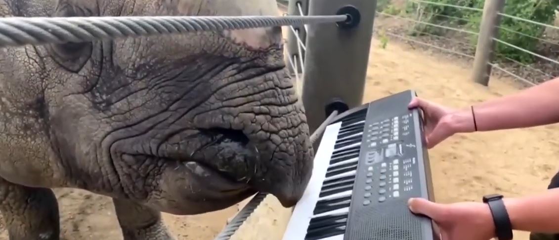 بطريقته الخاصة، احتفل وحيد قرن في حديقة حيوان دنفر بعيد ميلاده الـ12 بأداء أغنية عزفها على البيانو باستخدام شفته العليا.