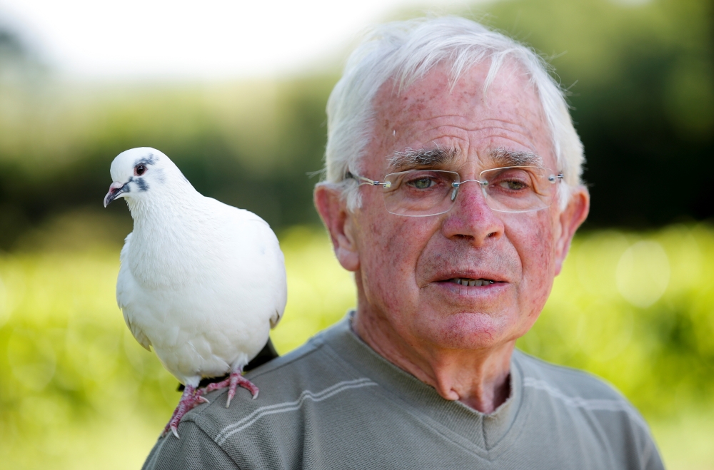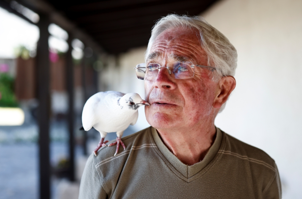 بالصور..صداقة فريدة بين عجوز فرنسي وحمامة بيضاء.."الاحترام متبادل"