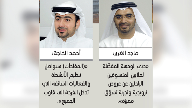 من جانبه، قال المدير التنفيذي لمؤسسة دبي للمهرجانات والتجزئة، أحمد الخاجة: «سعداء بتنظيم دورة جديدة من (مفاجآت صيف دبي)، التي تعد من الأحداث المميزة للجمهور ولعشاق التسوق؛ كونها تقدم العديد من العروض الترويجية المتنوعة، مع استضافة مجموعة من الأنشطة والفعاليات الشائقة التي تدخل الفرحة إلى قلوب الجميع».