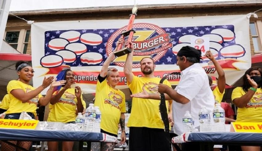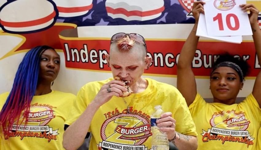 وتنافس 14 من أفضل المتسابقين المحترفين في الولايات المتحدة لمعرفة من يمكنه تناول أكبر عدد من شطائر البرغر في عشر دقائق للحصول على جوائز بقيمة 4350 دولارا من ضمنها الجائزة الكبرى وقيمتها 1750 دولارا نقدا.