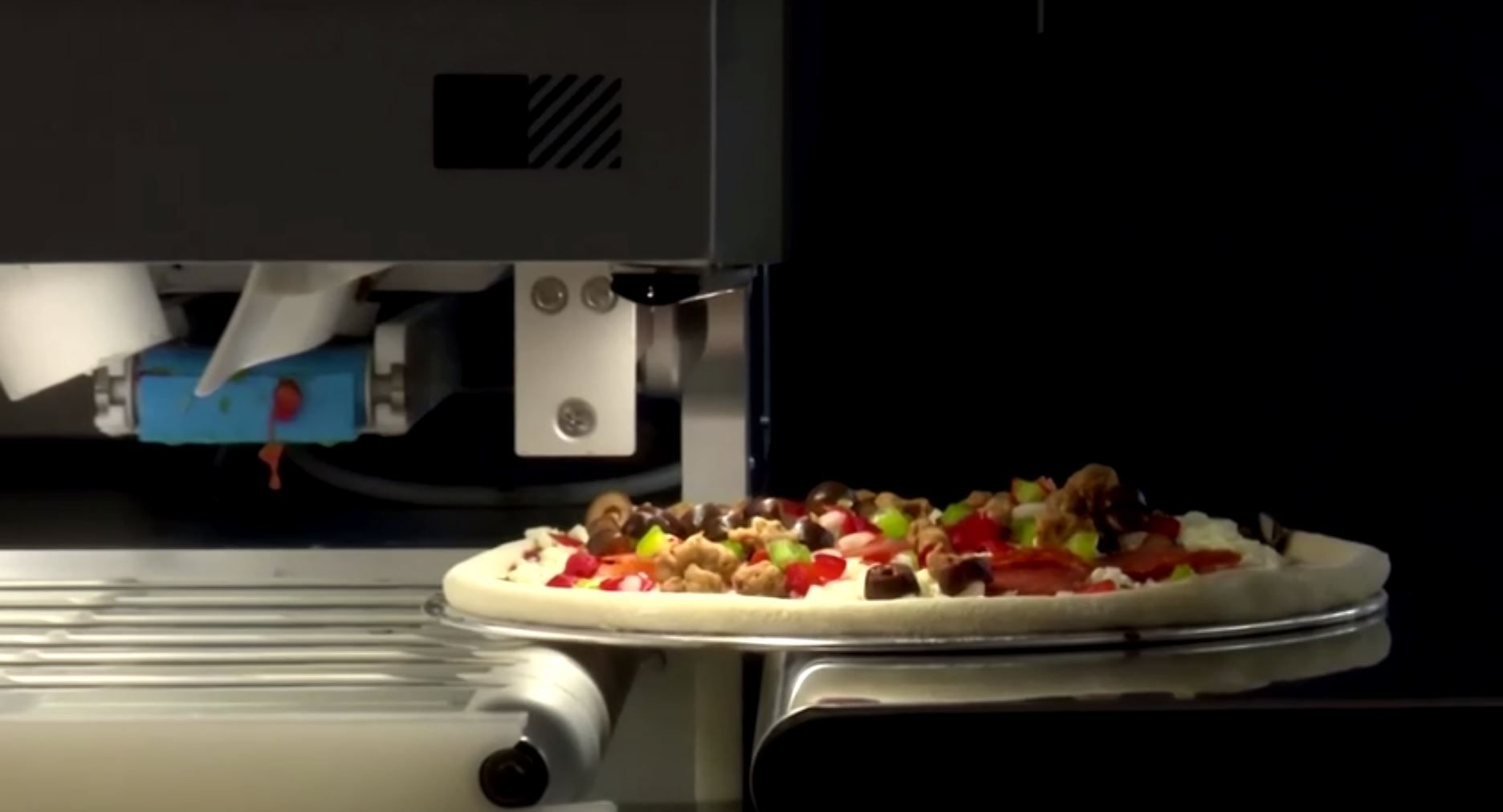 ويمد الروبوت بذراعه الآلية العجين، ثم يضع صلصة الطماطم، ويضيف الحشوة (وهي الخطوة الوحيدة التي تحصل بعيدا عن نظر الزبون)، قبل أن يضع البيتزا في الفرن ويخرجها ثم يوضبها في صندوق التوصيل الخاص بها.