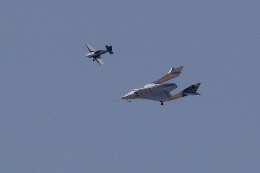 أقلعت الطائرة الفضائية البيضاء بينما كانت متصلة بالجانب السفلي للطائرة الحاملة المزدوجة البدن (إيف) على اسم والدة برانسون الراحلة، والتي أقلعت صباحا، وبعد وصولها إلى نقطة الانطلاق المرتفعة للغاية عند نحو 46 ألف قدم، انفصلت يونيتي عن الطائرة الأم بعد أن شغل طاقمها المحرك الصاروخي للمركبة لتصعد بسرعة الصوت إلى ارتفاع 85.9 كيلومتر في الفضاء.