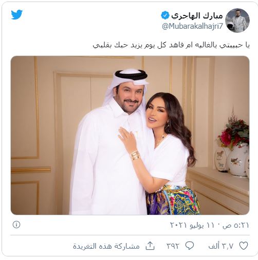 وغرد مبارك الهاجري، عبر حسابه على تويتر، برد غير مباشر كاتبا: “يا حبيبتي يالغاليه ام فاهد كل يوم يزيد حبك بقلبي” فيما اكتفت احلام بإعادة نشر التغريدة عبر حسابها على تويتر.