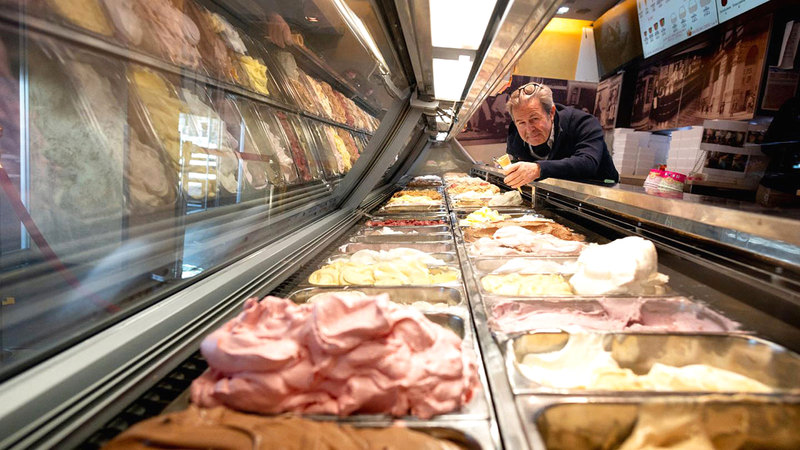 ويوضح الرجل الذي ورث إمبراطورية عائلية حقيقية، خلال إشرافه على العمل الذي مازال يحصل يدوياً في المتجر، أن المثلجات يجب أن تكون «بألوان الباستيل الشاحبة، وهذا ضمان الجودة».