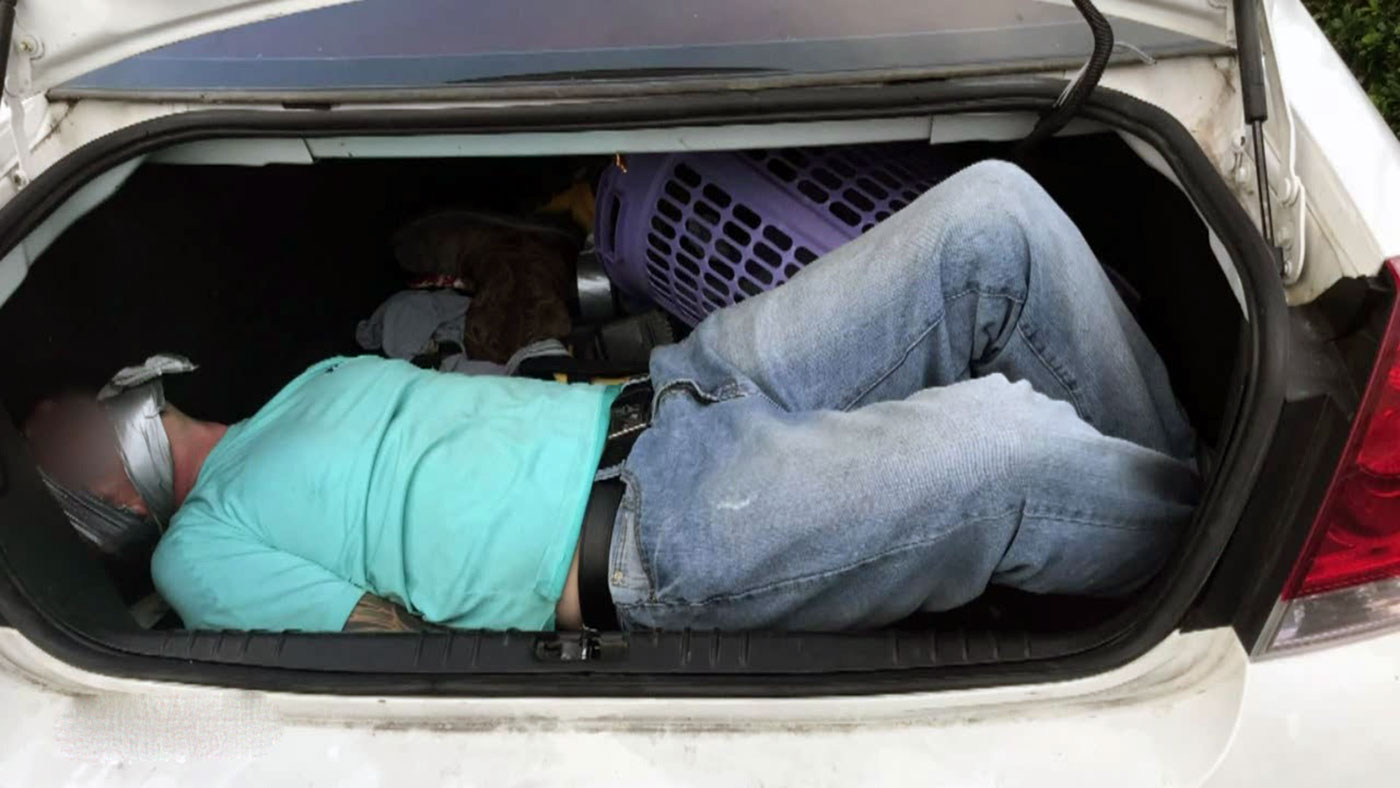 وظهر في الفيديو الذي نشره السعايدة الشاب المخطوف في صندوق السيارة، ويحاول افراد الدفاع المدني اسعافه.