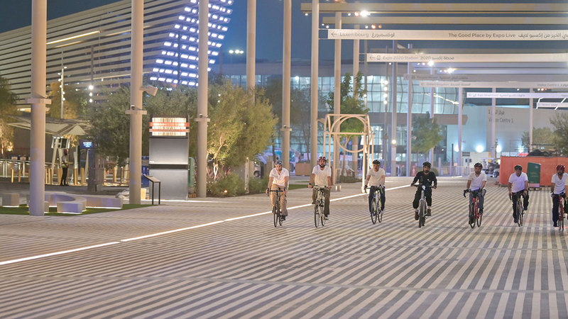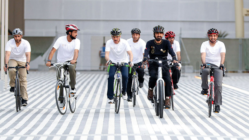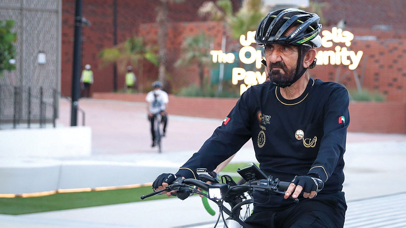 محمد بن راشد يتجول في «إكسبو دبي 2020» على دراجة هوائية