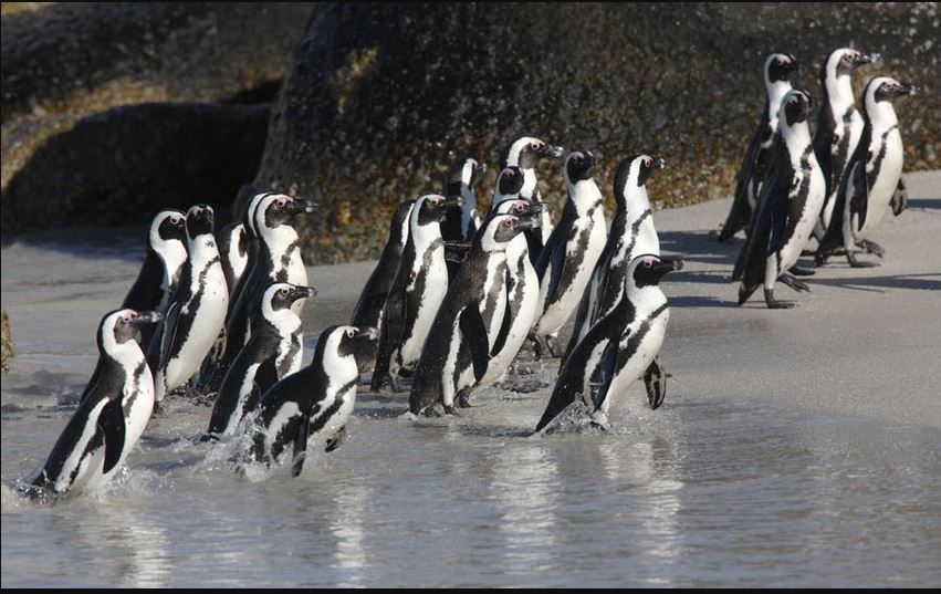 وتتكاثر طيور البطريق، المعروفة أيضا باسم «طيور البطريق ذات الأرجل السوداء» أو «طيور البطريق الحماري»، في جنوب إفريقيا ودولة ناميبيا المجاورة.