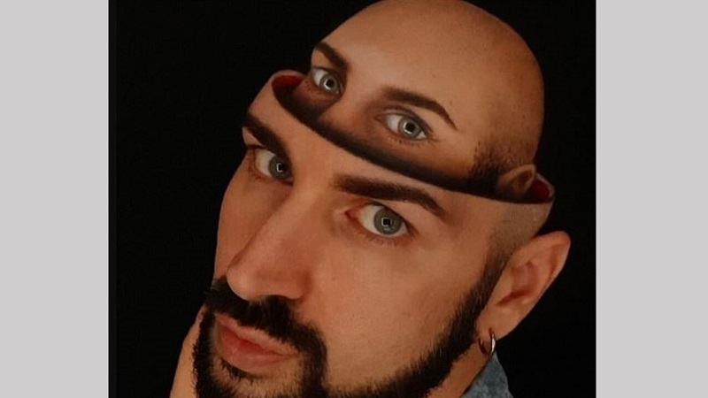انتشرت على نطاق واسع صور مذهلة ثلاثية الأبعاد، نفذها فنان المكياج الإيطالي، لوكا لوس، إحداها تظهر الفنان وكأنه برأسين، بالإضافة إلى صور أخرى تظهر رأسه وكأنها مقسومة نصفين، وثالثة وكأن يده تنمو من رأسه، ورابعة كأنه بثلاث عيون.