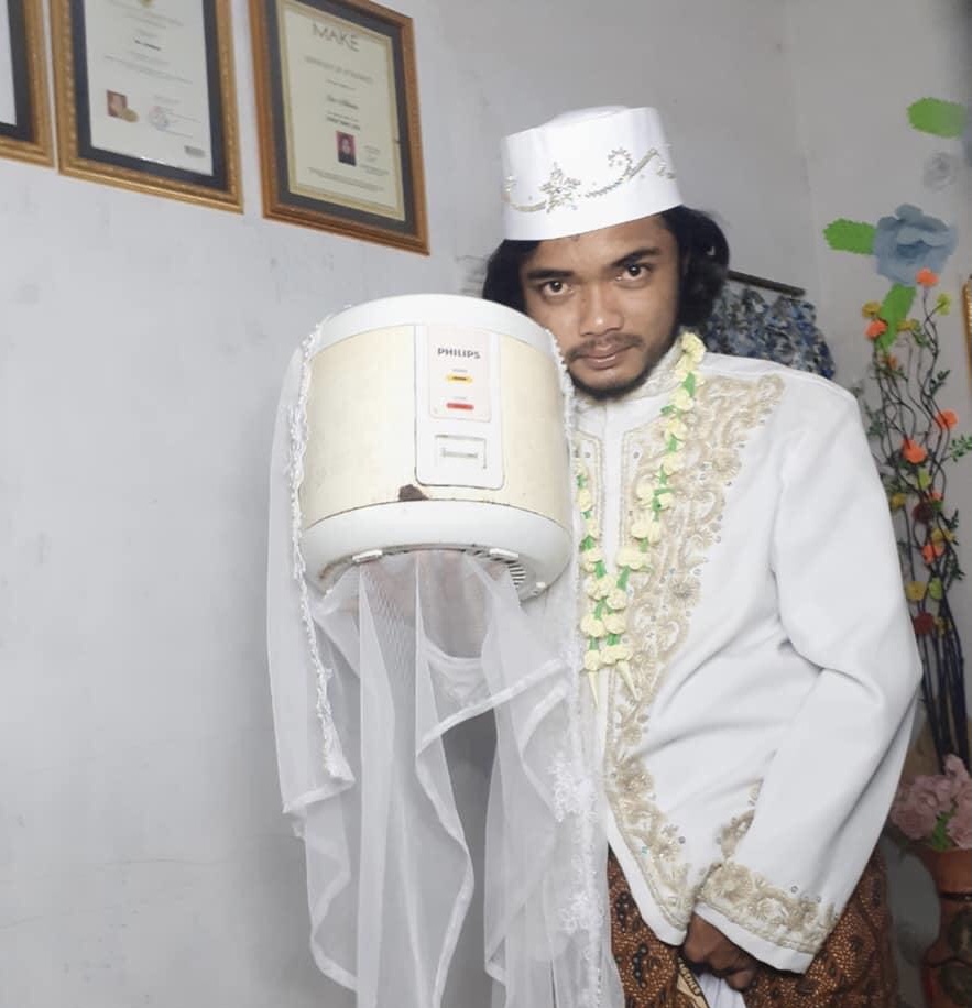 أصبح رجل إندونيسي حديث مواقع التواصل الاجتماعي بعد عقد قرانه على "آلة طبخ الأرز" الخاصة به، واصفًا إياها بكونها الشريك الهادئ الحالم والمثالي.