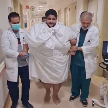 تمكن مواطن سعودي وزنه 500 كيلوغرام من المشي من جديد بعد 6 أعوام من المعاناة بسبب السمنة، وذلك عقب إجرائه عملية جراحية شارك فيها أكثر من 60 طبيبا وممرضا وفنيا.