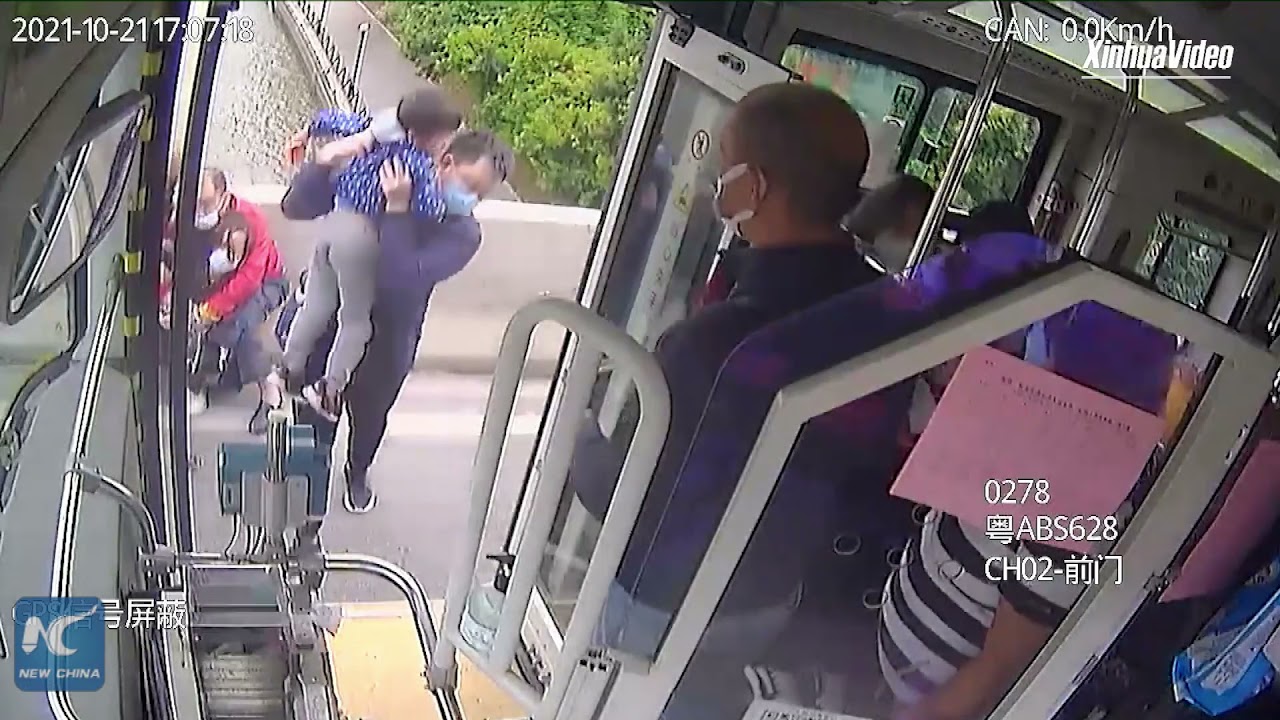 ويظهر في الفيديو الذي نشرته وكالة الأنباء الصينية (شينخوا) اقتراب السائق من السيدة وابنها التي كانت تحمله وتحاول القفز به من أعلى الجسر إلى النهر، لكن السائق كان أسرع منها ليخرج من حافلته ويمسك بهما في آخر لحظة، بمساعدة عدد من الركاب.