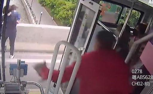 أنقذ سائق حافلة سيدة وطفلها الصغير من محاولة انتحار، من فوق أحد الجسور في مقاطعة غوانغدونغ جنوبي الصين.