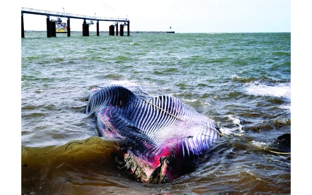 جنح حوت يبلغ طوله 19 مترا ووزنه نحو 15 طنا إلى ميناء كاليه في شمال فرنسا حيث نفق، في ظاهرة نادرة في هذه المنطقة الفرنسية الساحلية.