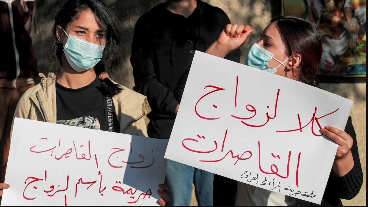 ويعاقب قانون العقوبات العراقي « بالسجن ستة أشهر وغرامة تتراوح بين 200 ألف ومليون دينارعلى تزويج أي طفلة لم تبلغ 15 سنة، خارج المحاكم».