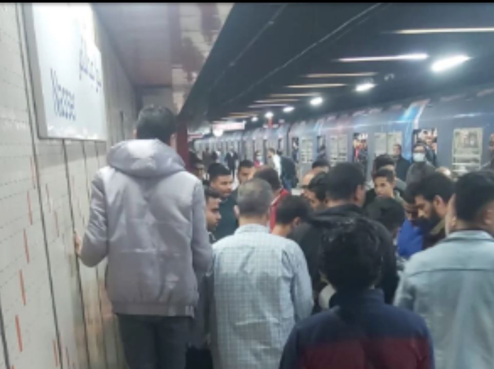 مشاجرة عنيفة بين فتاة وشاب تعطل حركة مترو انفاق القاهرة