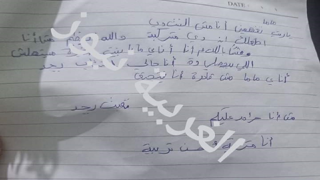 وتداول أهالى كفر الزيات رسالة للفتاة تركتها قبل انتحارها لوالدتها قالت فيها: "ماما يا ريت تفهميني أنا مش البنت دي وإن دي صور متركبة والله العظيم وقسمًا بالله دي ما أنا، أنا يا ماما بنت صغيرة مستهلش اللي بيحصلّي ده أنا جالي اكتئاب بجد، أنا يا ماما مش قادرة أنا بتخنق، تعبت بجد".