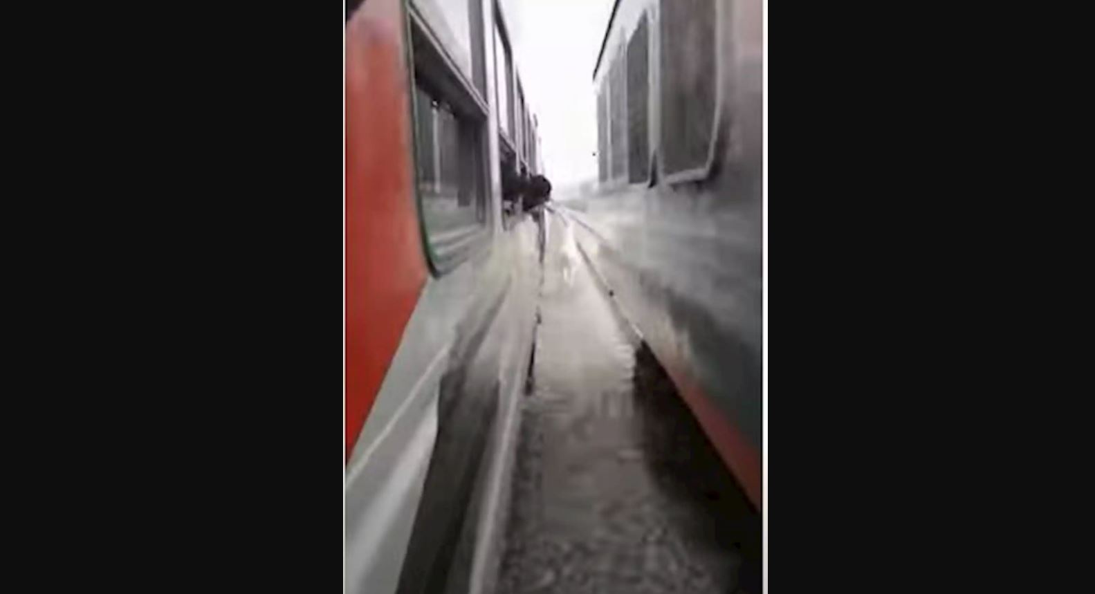 و في مشهد غريب يحبس الأنفاس، تداول رواد مواقع التواصل مقطع فيديو يكشف نجاة حصان من الموت بأعجوبة بعد محاصرته بين قطارين سريعين متضادين على قضبان السكة الحديد.