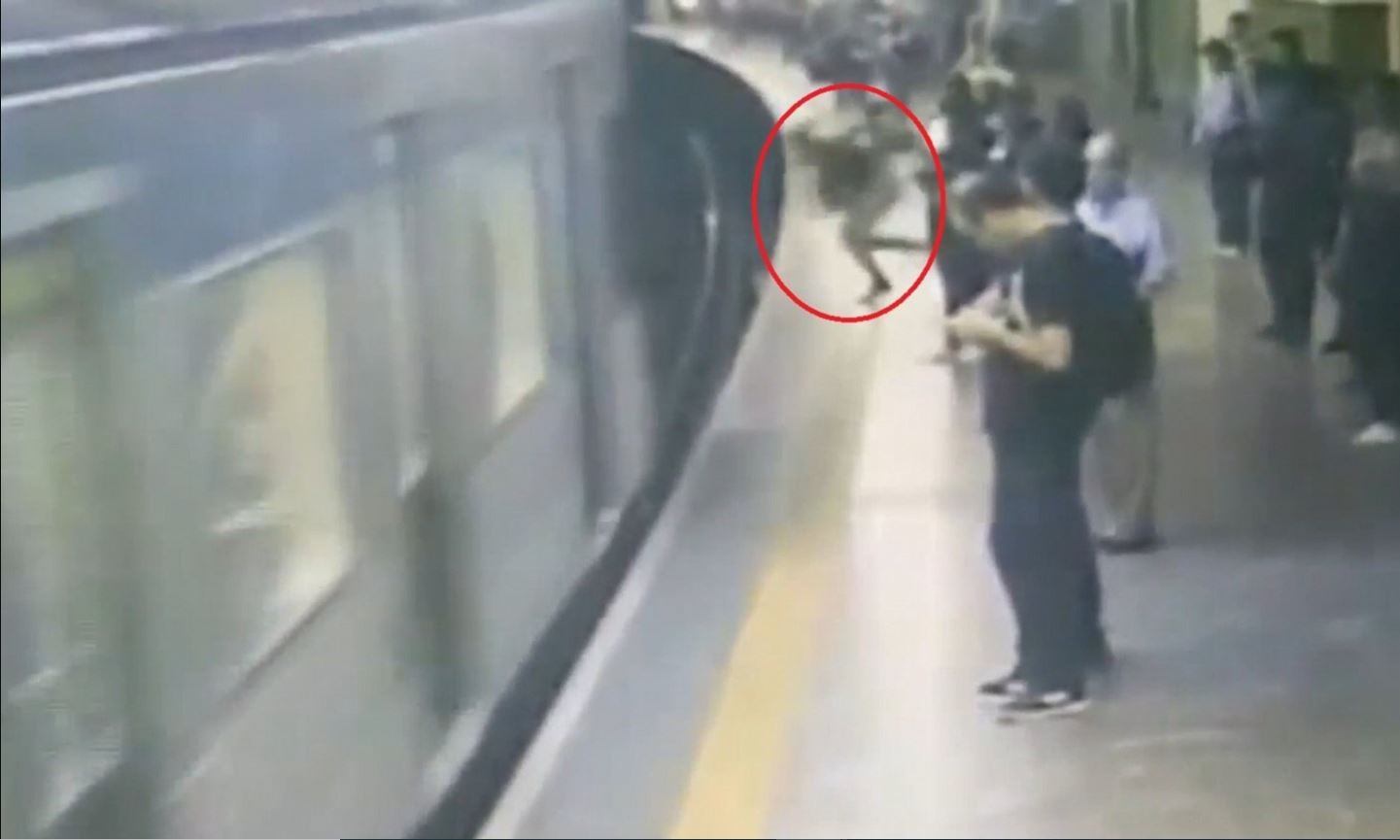 ويوثق فيديو الشاب المرأة وهو يدفع المرأة في ظهرها مع اقتراب مترو أنفاق، وهرب راكضًا في الاتجاه المعاكس، إلا أن ردة فعل سائق المترو كانت سريعة، حيث قام بعد أن نبه الناس على المنصة، بفرملة طارئة، و لم يصب الضحية.
